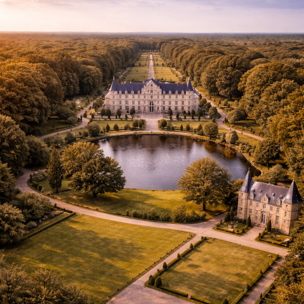 Zwischen Schloss 1 und Schloss 2 erstreckt sich eine großzügige Parklandschaft mit einem ruhig eingebetteten See.